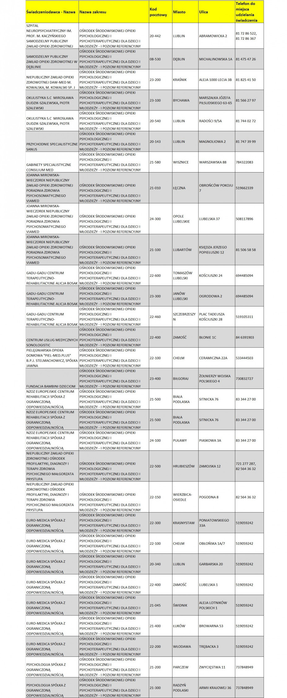 Lista placówek znajduje się w załączniku.