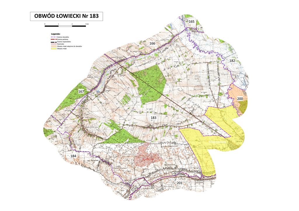 Mapy poglądowe okręgów Nr 166, Nr 183 i Nr 201 znajdują się w załączniku.