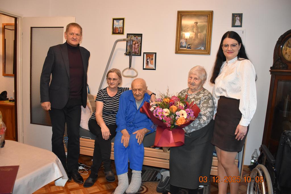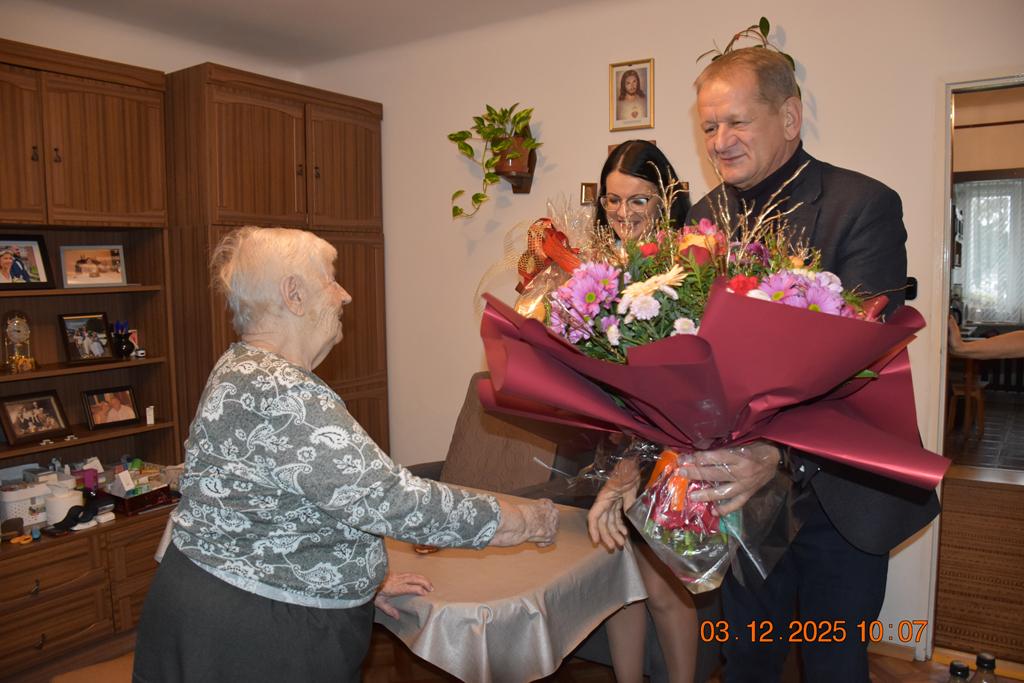 3 grudnia 2025 r. przedstawiciele Samorządu Gminy Fajsławice – Wójt Gminy Pan Janusz Pędzisz oraz Kierownik Urzędu Stanu Cywilnego Pani Iwona Sobczuk – odwiedzili wyjątkowych mieszkańców naszej gminy, Państwa Różę i Kazimierza Pełczyńskich, którzy w dniu 3 października obchodzili niezwykły Jubileusz 75-lecia pożycia małżeńskiego.