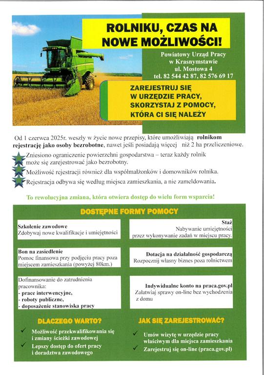 Po zakończonych obradach odbyło się spotkanie z przedstawicielami Powiatowego Urzędu Pracy w Krasnymstawie. Pani Anna Fornal i pani Małgorzata Kawałkowska poinformowały radnych i sołtysów o zmianach jakie nastąpiły w przepisach od 1 czerwca 2025r. dające rolnikom nowe możliwości, m.in.: rejestrację rolnika jako osoby bezrobotnej, bez ograniczenia wielkością powierzchni gospodarstwa, korzystania z różnych form pomocy takich jak szkolenia zawodowe indywidualne jak i grupowe, staże, bony na zasiedlenie czy dotacje na działalność gospodarczą. Podane informacje radni i sołtysi będą mogli przekazywać mieszkańcom w swoich miejscowościach, zachęcając osoby zainteresowane do kontaktu z Powiatowym Urzędem Pracy w Krasnymstawie, gdzie każdy rolnik będzie mógł uzyskać szczegółowe informacje, dotyczące jego indywidualnego przypadku.